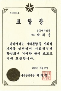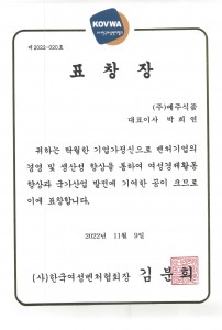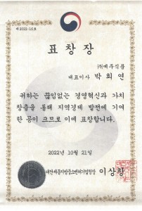 HOME > 예주식품 소개 > 수상인증