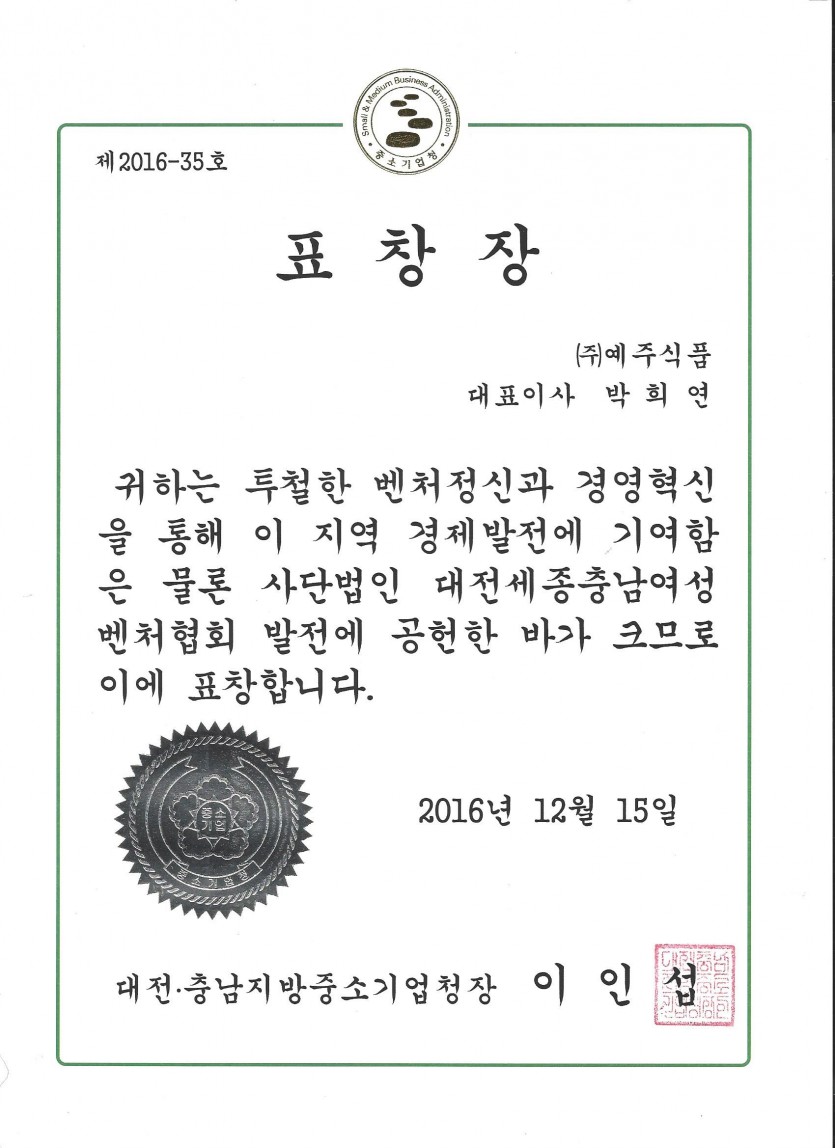 (주)예주식품 주소 : 대전광역시 서구 도마8길 16(도마동)